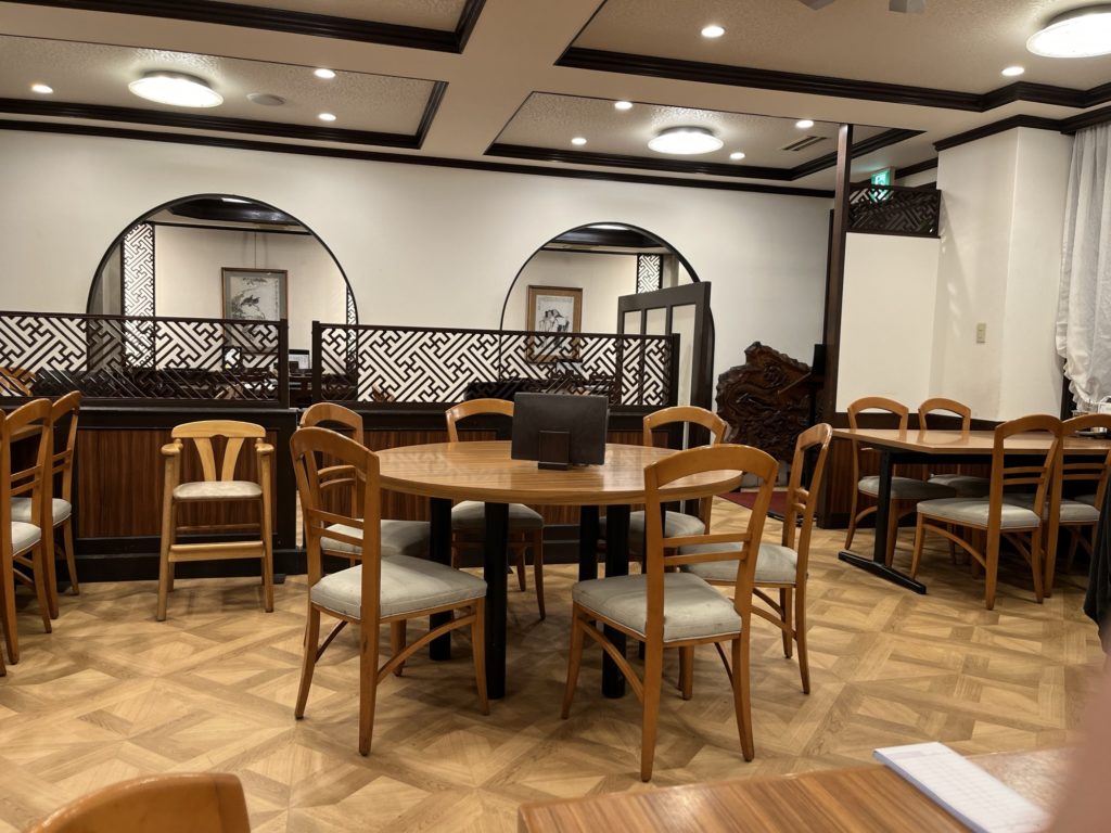 お店の中は、木のテーブルがズラリ、壁には中国風の飾り。派手すぎず、清潔感がある。テーブル間も広く、大皿料理を頼っても余裕がある配置になっているのが嬉しい。