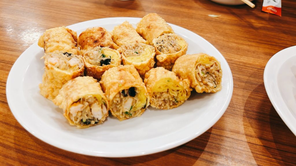 ひと口かじると…まず驚くのは皮の食感。 一般的な春巻のようなパリではなく、ふんわり柔らか。 まるで卵生地を軽く揚げたような不思議な食感。 中はたっぷりの具材が詰まっていて、酢醤油をつけて食べると、口いっぱいに旨みが広がる。