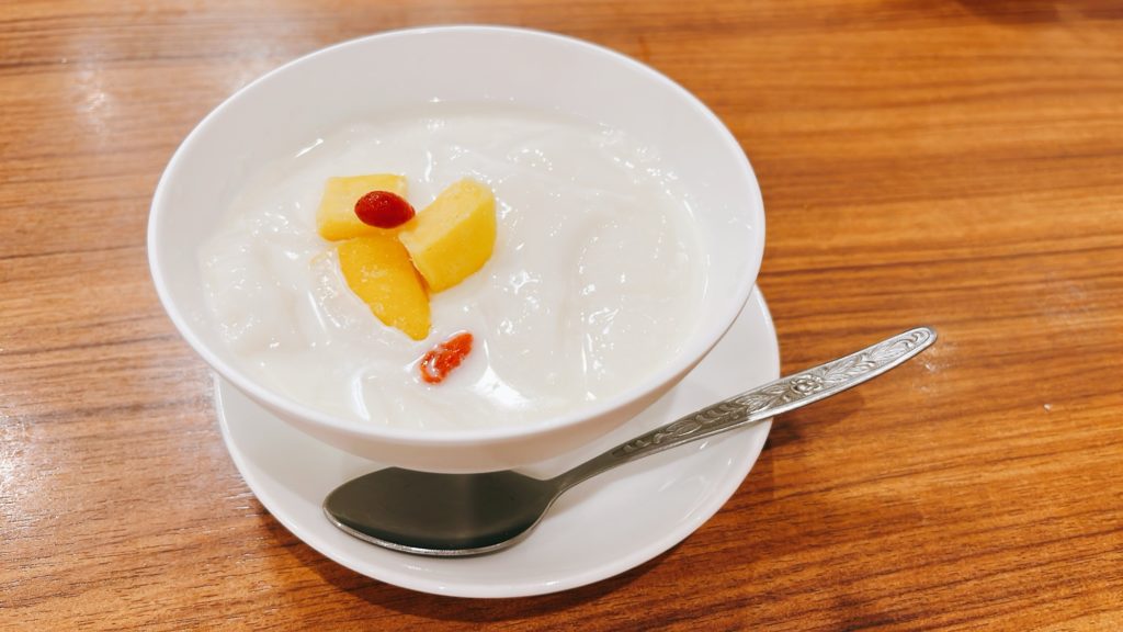 そして食事後に欠かせないのが杏仁豆腐。 油香る中華料理のあとの〆にぴったりのさっぱりとした一品だ。