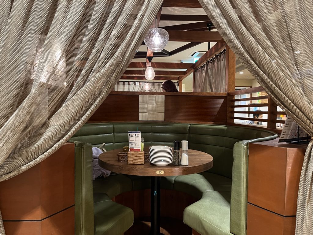 席は「半個室」と「オープン席」があり、店員さんの案内を待つ間、ざっと見渡したところ――正直、オープン席はかなりにぎやか。小さな子どもたちの声が響き、談笑や食器の音もあわさって、テーブル越しの会話も少し聞こえづらいくらい。