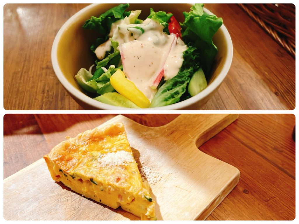 私は「サラダ」、友人は「キッシュ」を選びました。